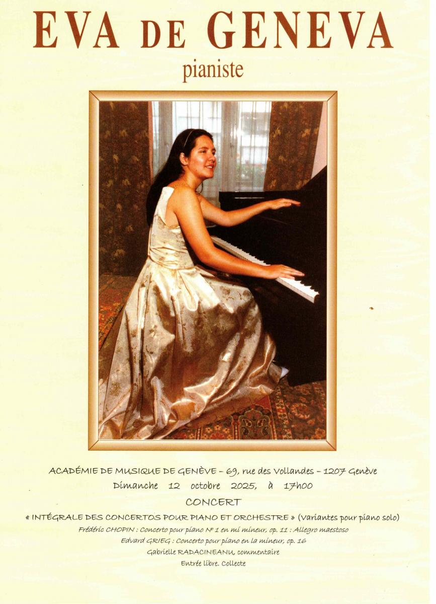Eva de Geneva, pianiste - Gabrielle Radacineanu, commentaire.